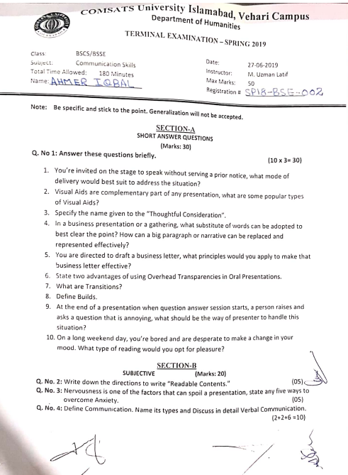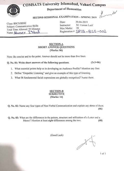 Communication skills Mid term Examination